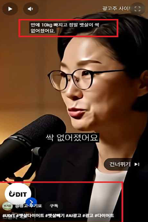 - 다이어트 패치, 키 크는 제품, 여드름 치료 등에서 before→after 사진이 사용된다면 AI 이미지 편집 가능성이 높아요.