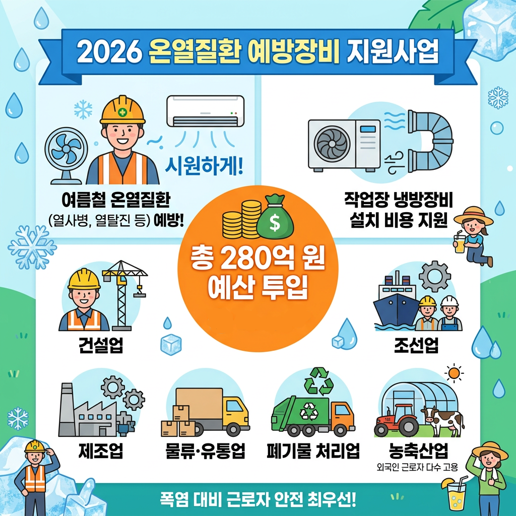 2026년에는 정부와 안전보건공단이 총 280억 원 규모 예산을 투입해 폭염 취약 사업장을 지원합니다.