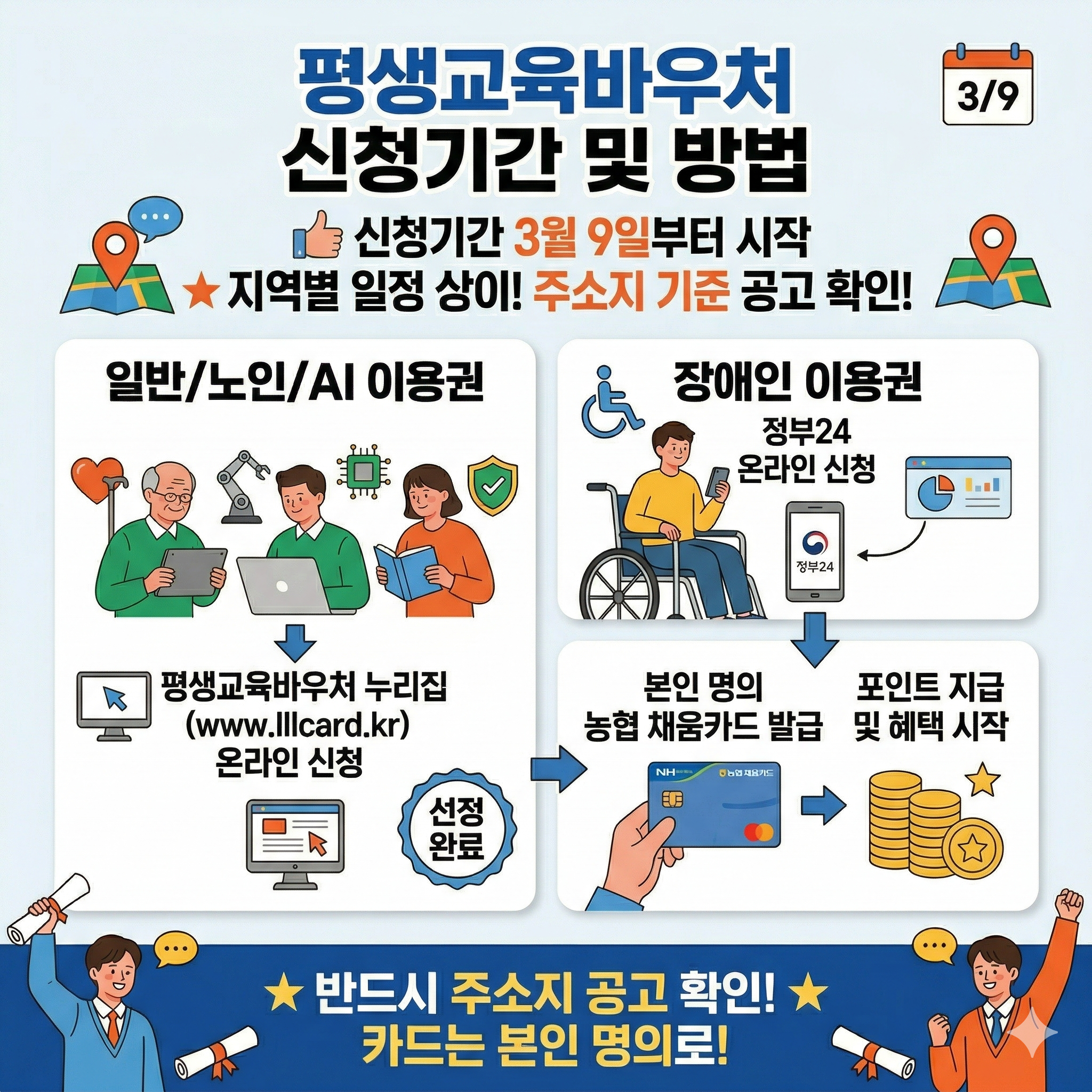 - 일반/노인/AI 이용권: 평생교육바우처 누리집(www.lllcard.kr) 온라인 신청