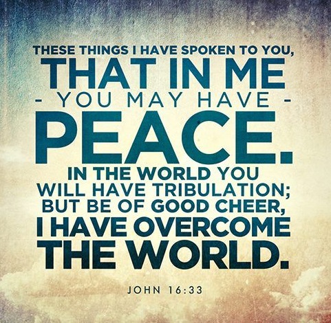 이것을 너희에게 이르는 것은 너희로 내 안에서 평안을 누리게 하려 함이라 세상에서는 너희가 환난을 당하나 담대하라 내가 세상을 이기었노라 (요한복음 16장 33절)