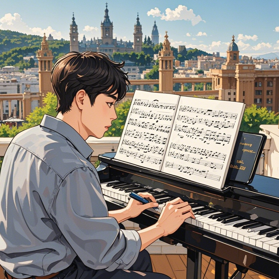 1935년, 스페인 바르셀로나에서 애국가의 작곡 작업을 마쳤으며, 그는 특히 웅장한 화음과 서사적인 구조를 통해 조국의 아름다움과 민족의 정신을 표현하려고 했어요.