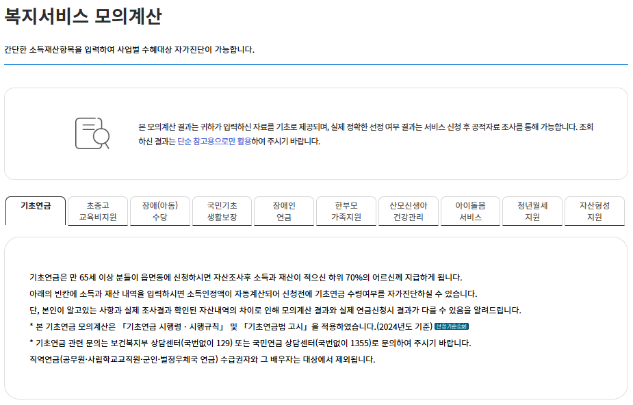 ★ 소득인정액 모의계산 (클릭) ★