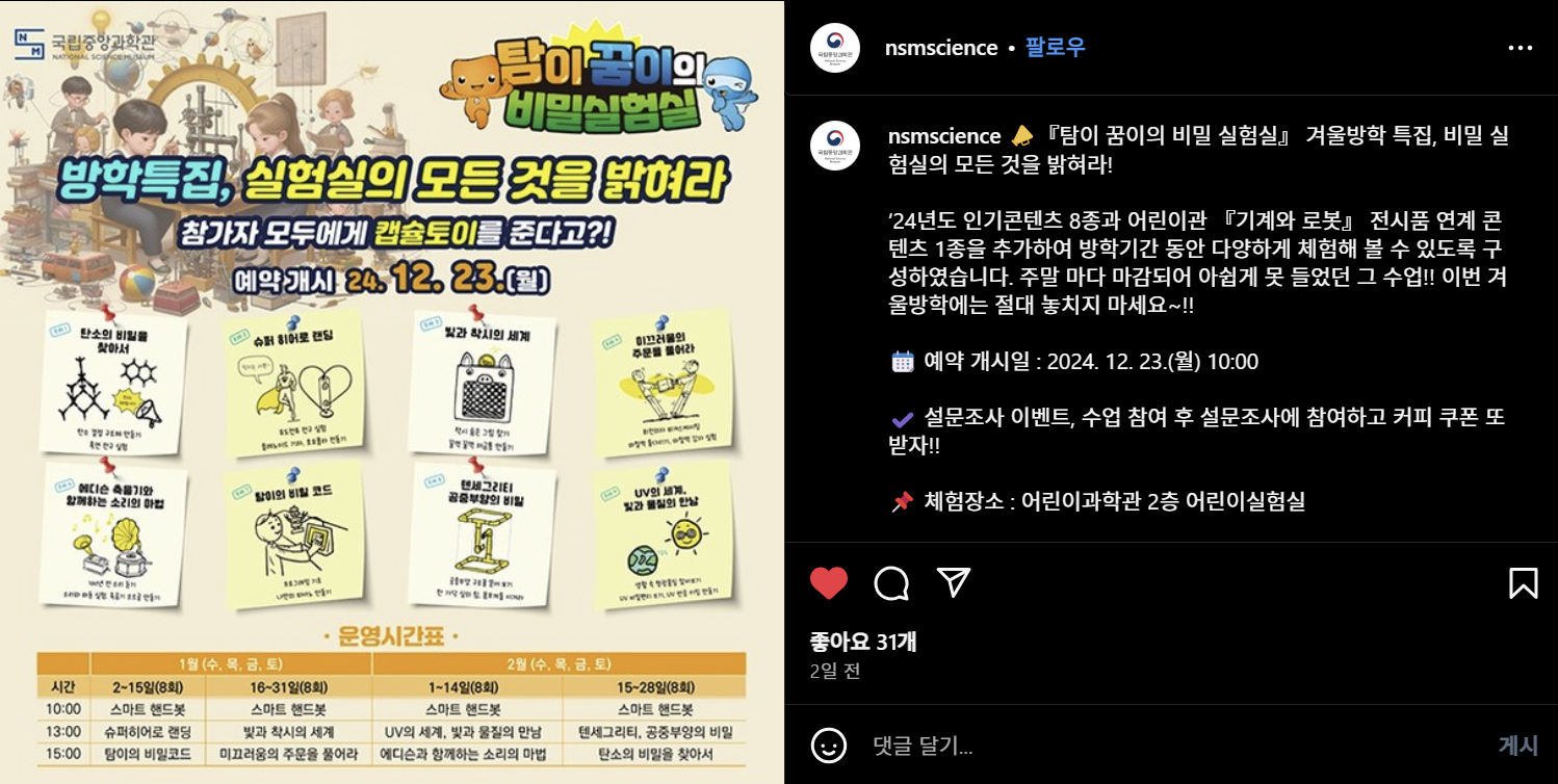 국립중앙과학관에서 특별한 겨울방학을!