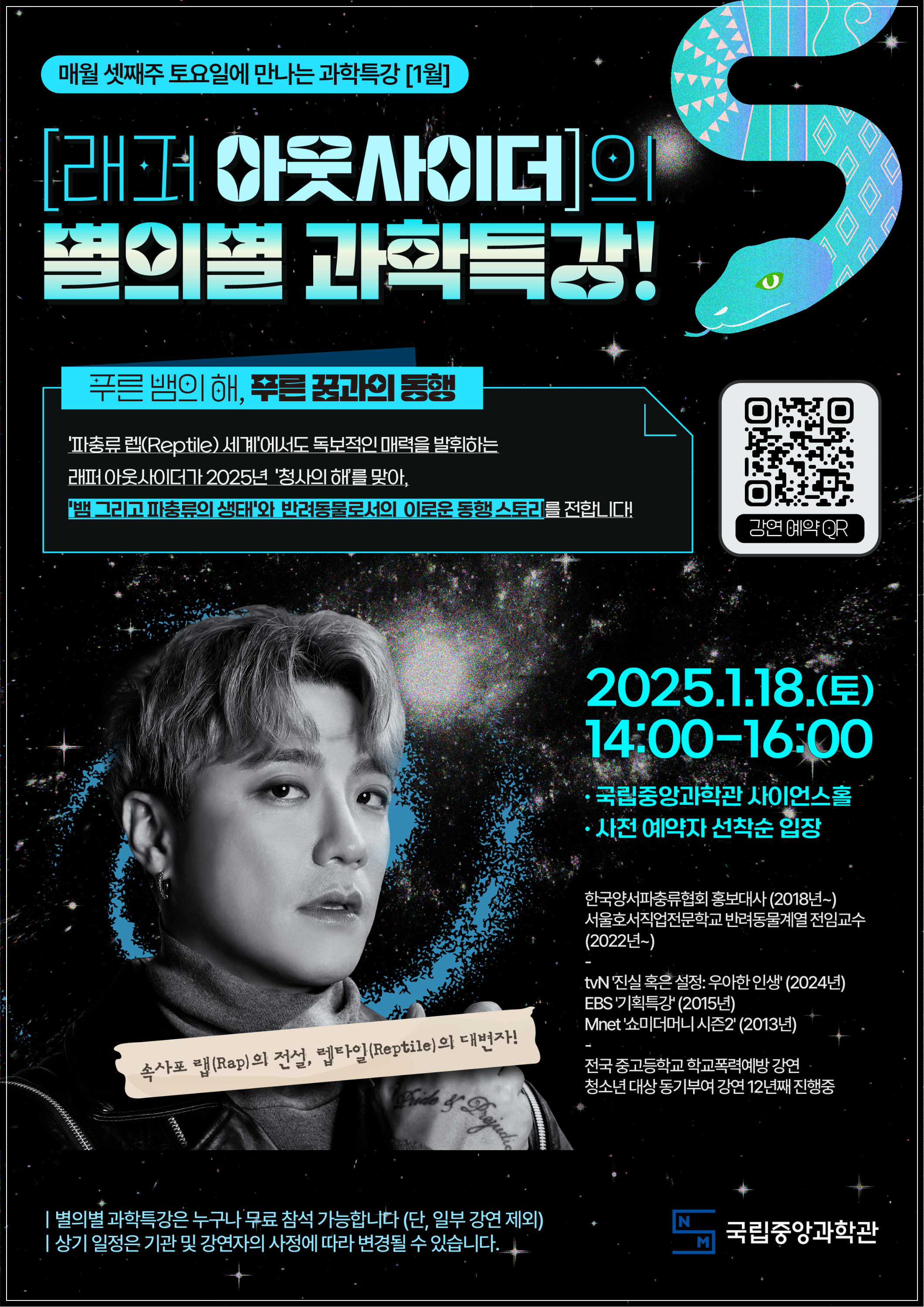 국립중앙과학관에서 매월 셋째 주 토요일마다 진행하는 '별의별 과학특강'이 2025년에도 어김없이 찾아옵니다. 이번 1월 특강은 1월 18일(토) 오후 2시에 개최되며, 주제는 "푸른 뱀의 해, 푸른 꿈과의 동행"이에요.