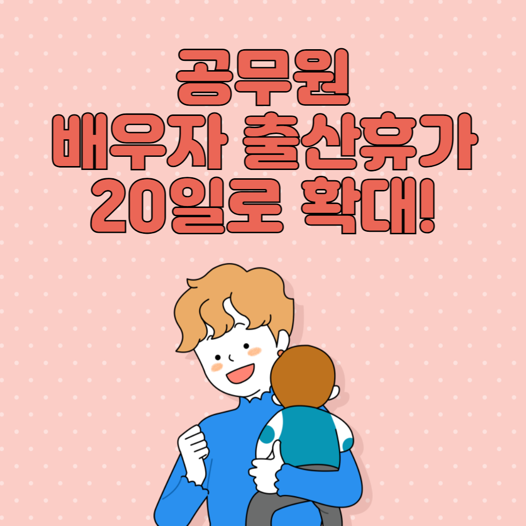 이번 개정안의 핵심은 배우자 출산휴가 확대입니다. 기존에는 공무원의 배우자가 출산하면 10일의 휴가를 받을 수 있었는데요. 앞으로는 20일로 두 배 증가합니다.