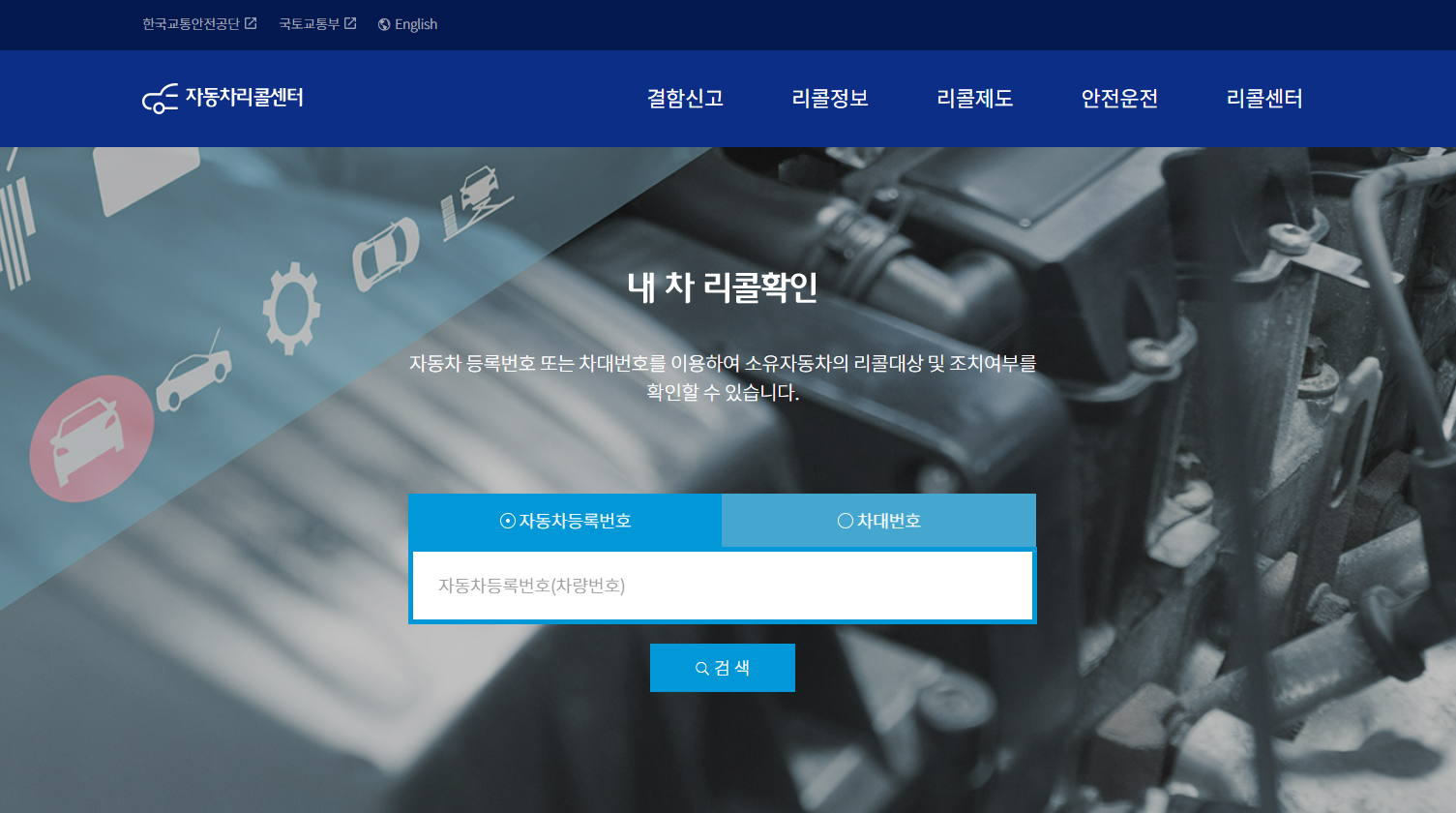 차량번호 또는 차대번호를 입력하면 내 차가 리콜 대상인지 쉽게 확인할 수 있습니다.