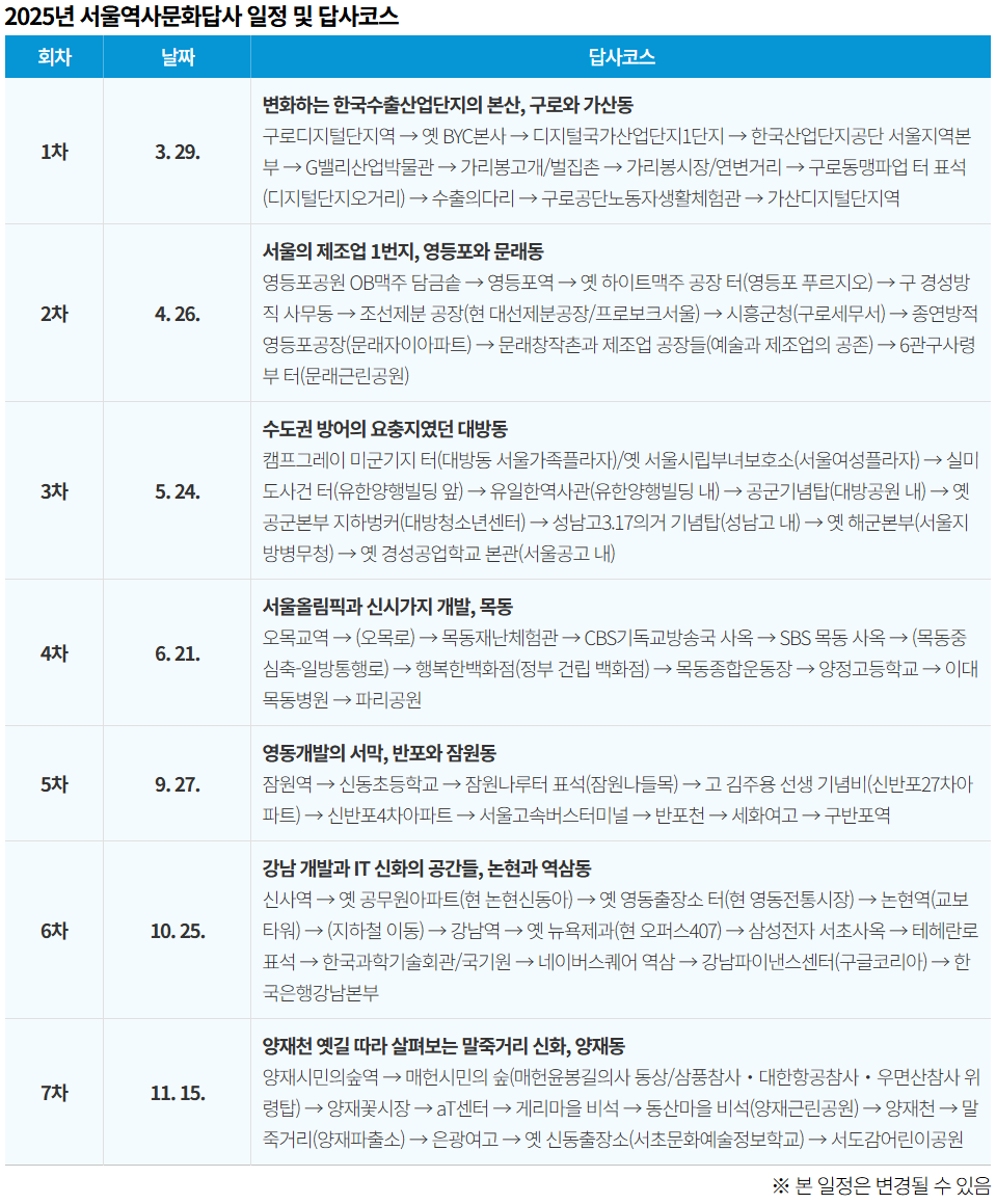 서울역사문화답사 일정 및 주제